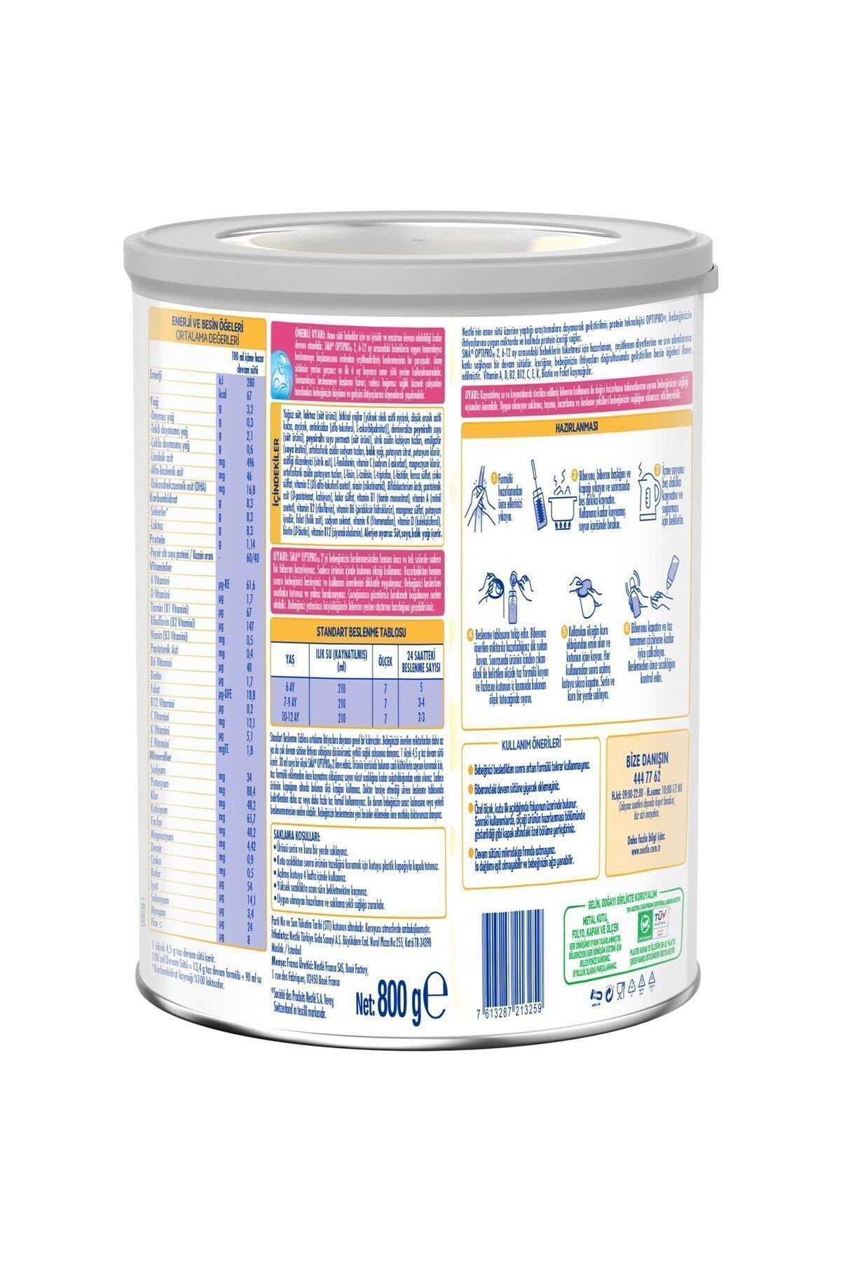 Sma 2 Optipro Devam Sütü 800 gr x 2 AdetSMA 2 OPTIPRO 800 gr x 2 Adet 6-12 Ay Devam Sütü- Optipro; bebeğinizin ihtiyaçlarına uygun miktar ve kalitede protein sağlamak için Nestle tarafından geliştirilen eşsiz protein teknolojisidir.- Vitamin kaynağıdır.- İyot ilavelidir.- 800 gr- Açılmış kutuyu 3 hafta içinde kullanınız.