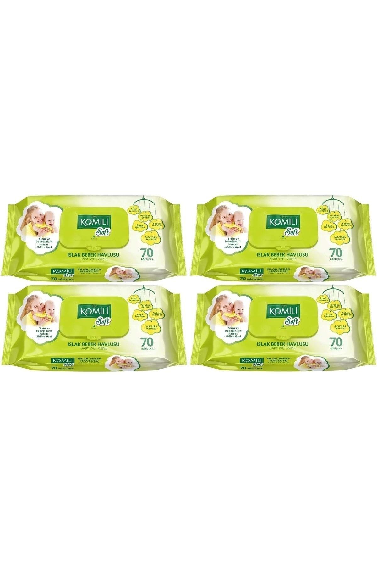 Soft Islak Havlu Mendil 70 Yaprak (4 Lü Set) 280 Yaprak Plastik Kapaklı (PAKETKOMİLİ0889)