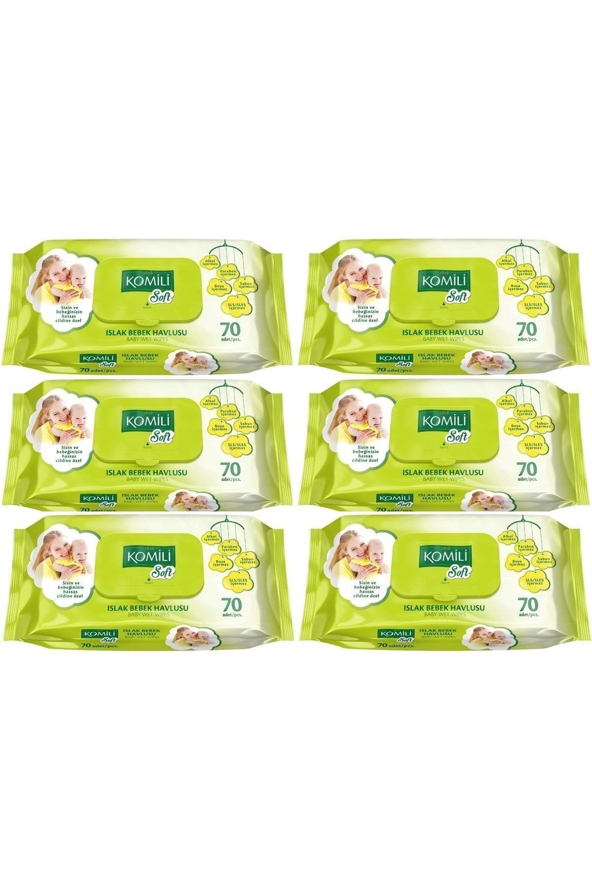 Soft Islak Havlu Mendil 70 Yaprak (6 Lı Set) 420 Yaprak Plastik Kapaklı (PAKETKOMİLİ0890)